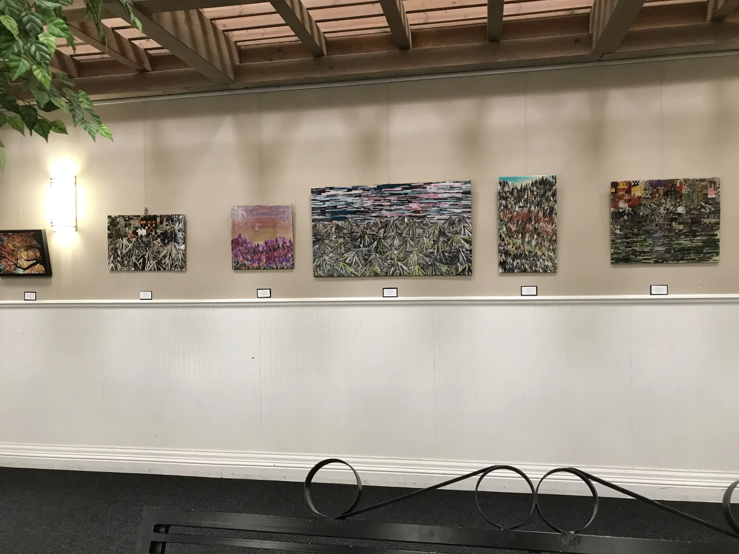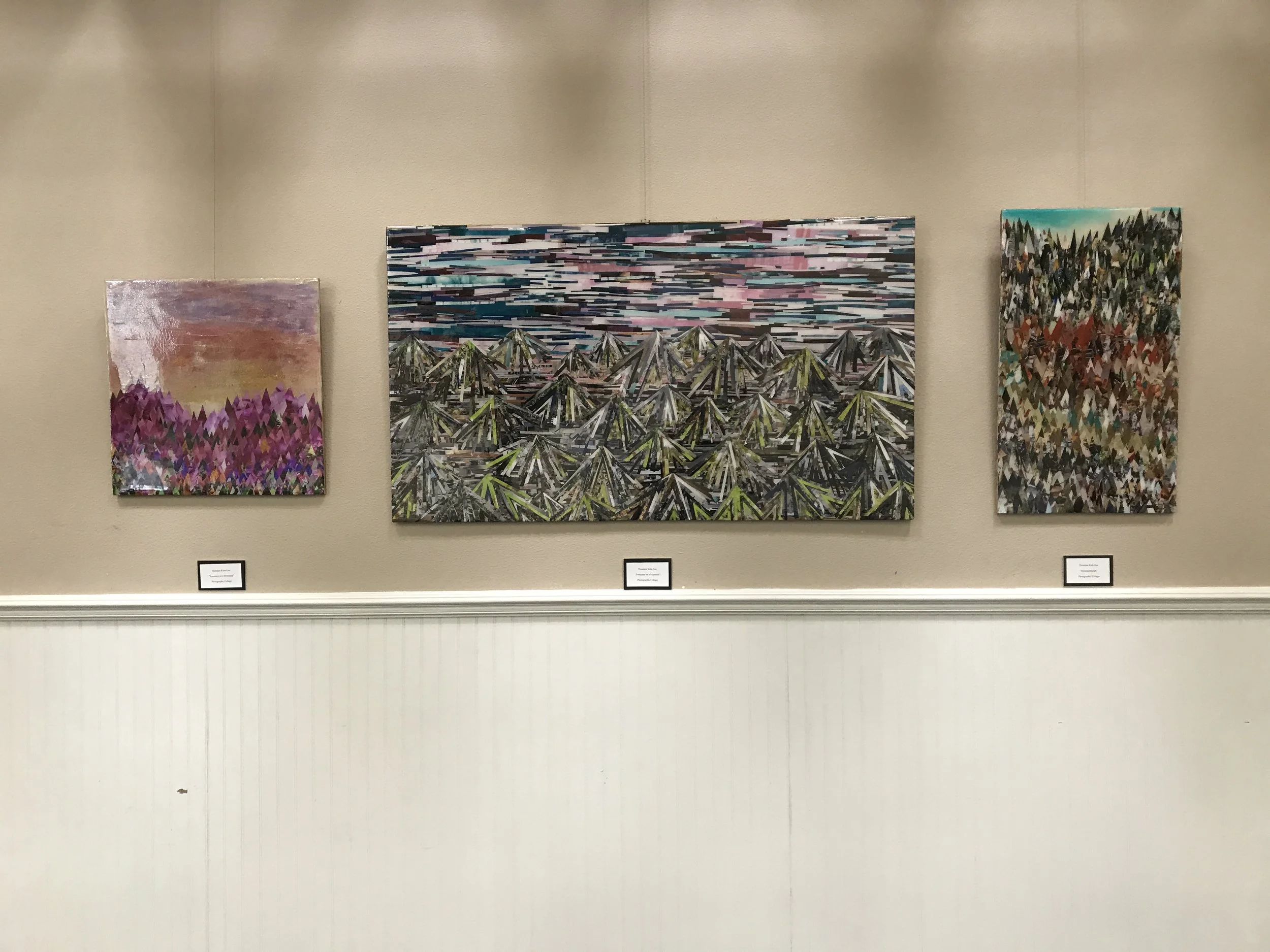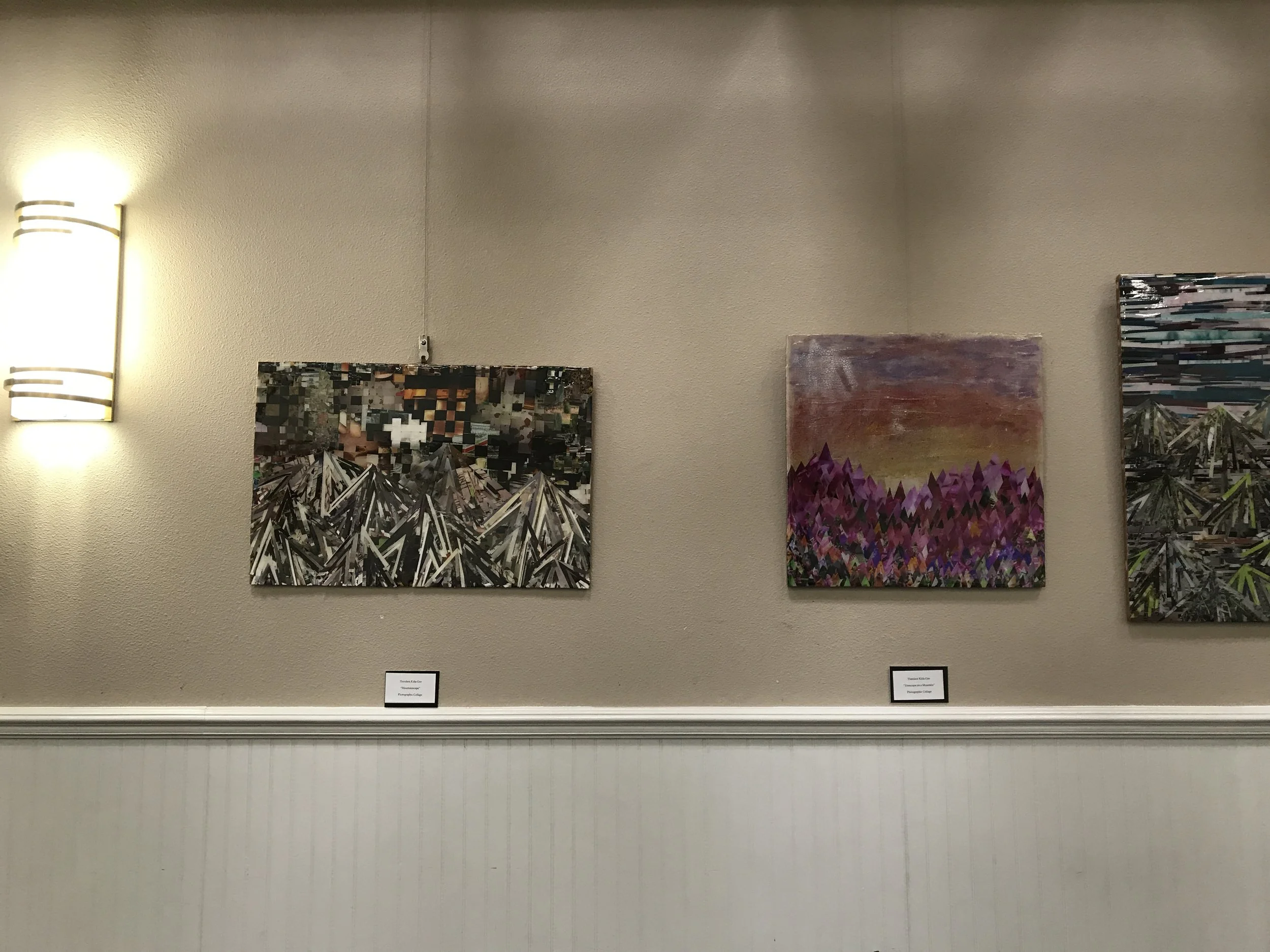 I have five Mountainscapes from my recycled Landscapes showing at Shelton Civic Center until the end of May, please stop by and check out my work as well as that of three other artists.