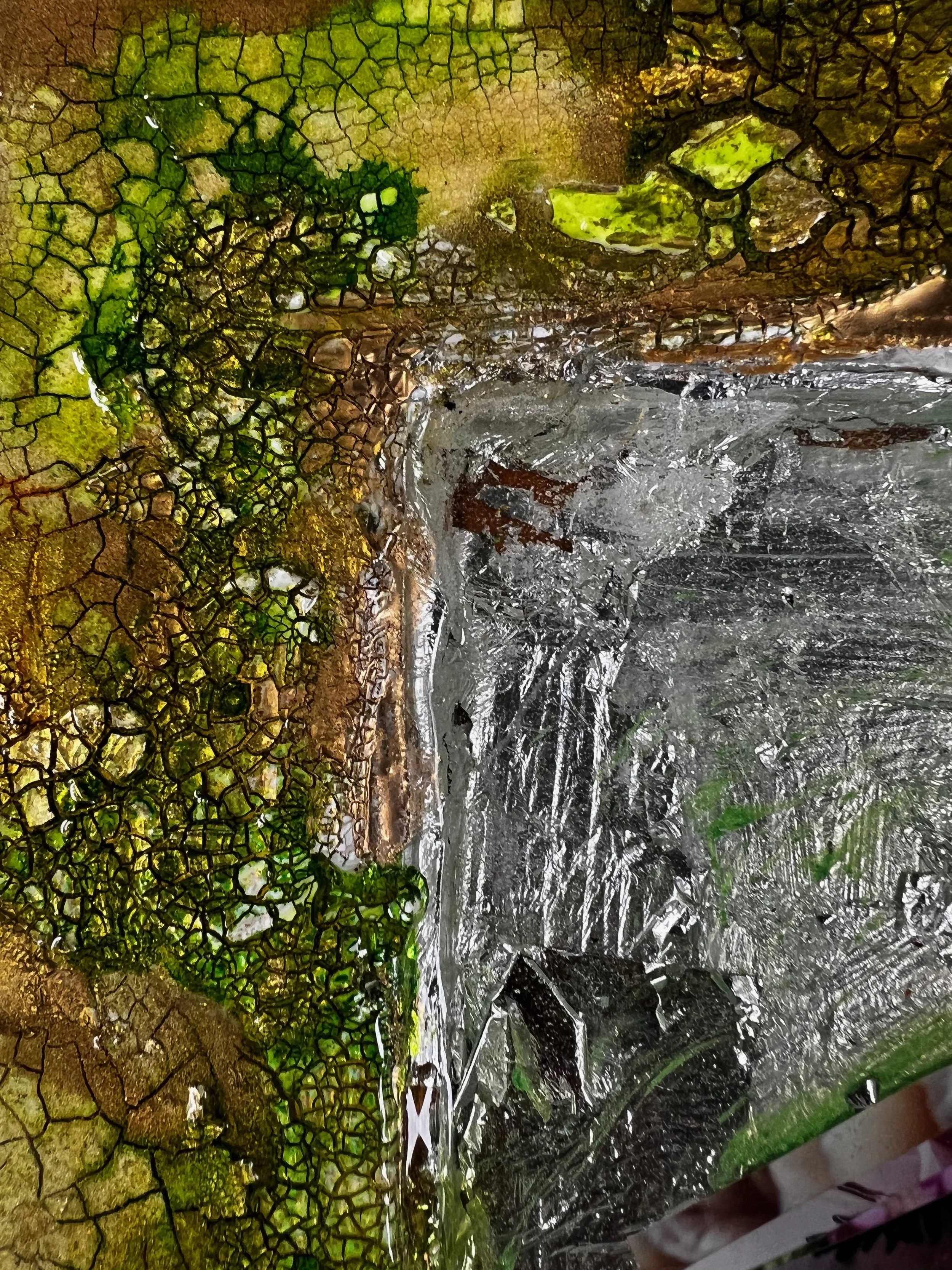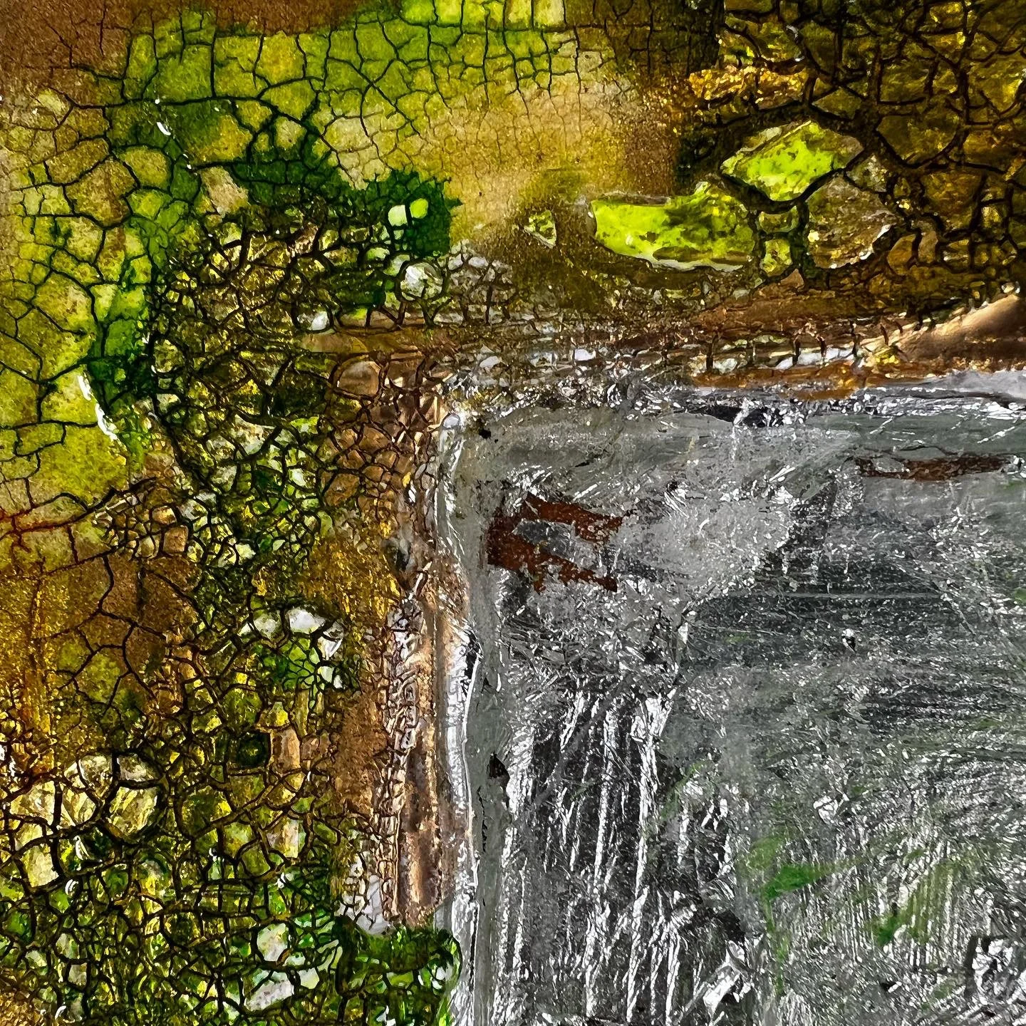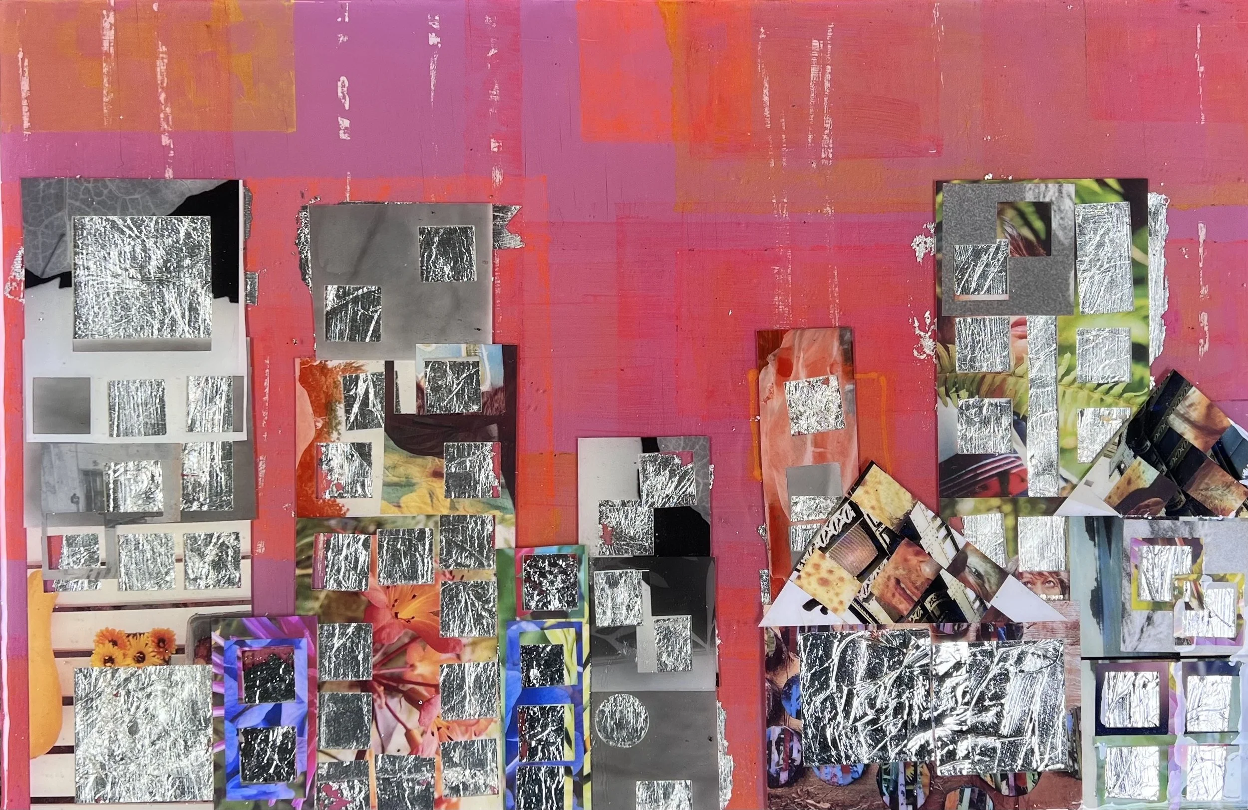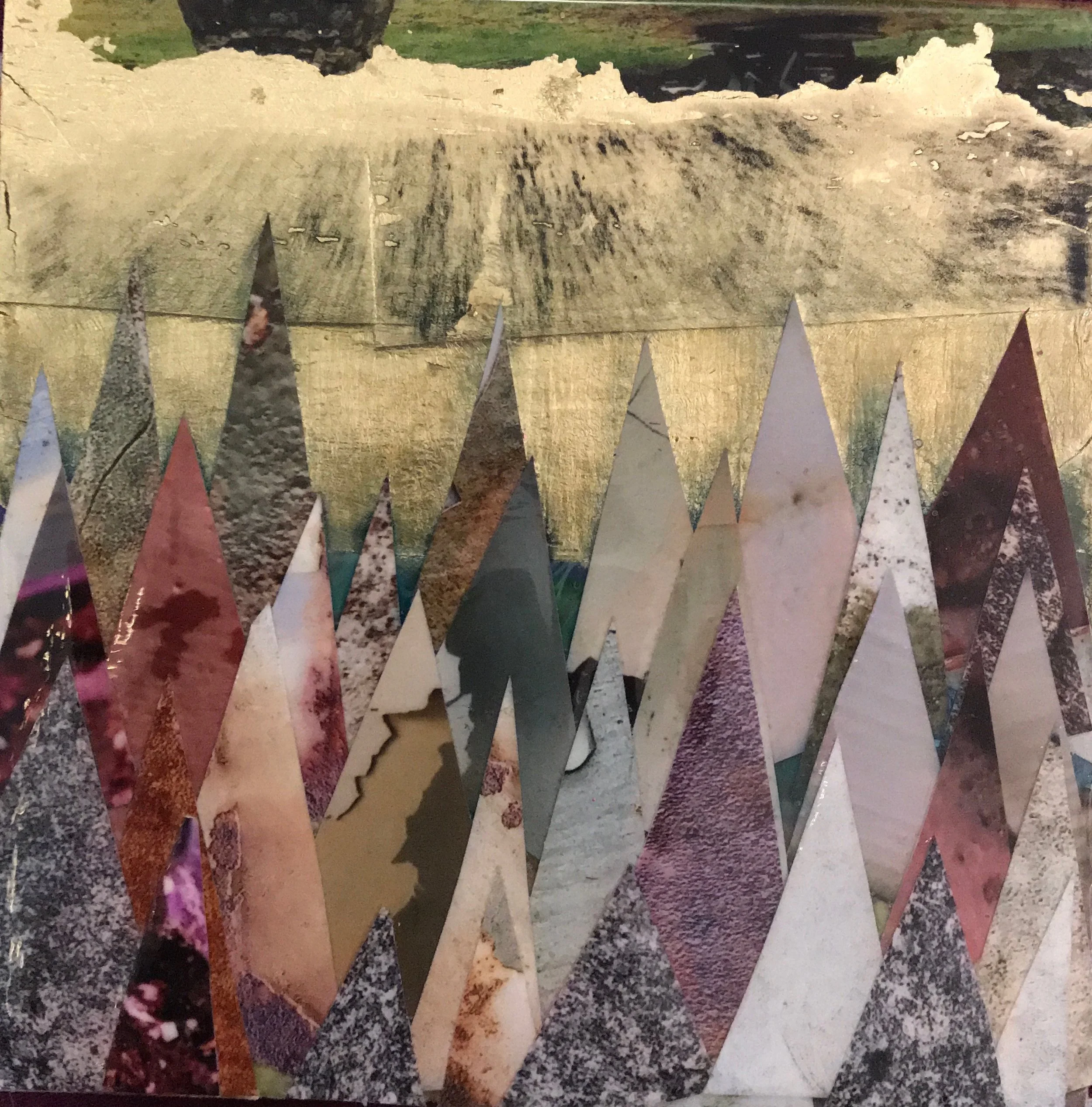 16”x24” Photographic based collage , paint, metal foils, and resin on wood created amongst the pandemic art making mania 2020.