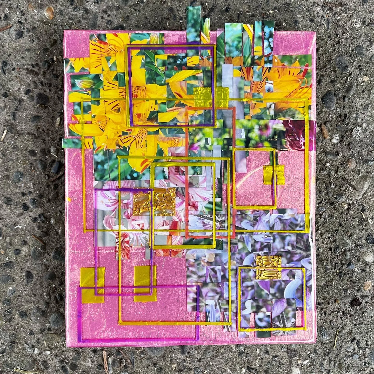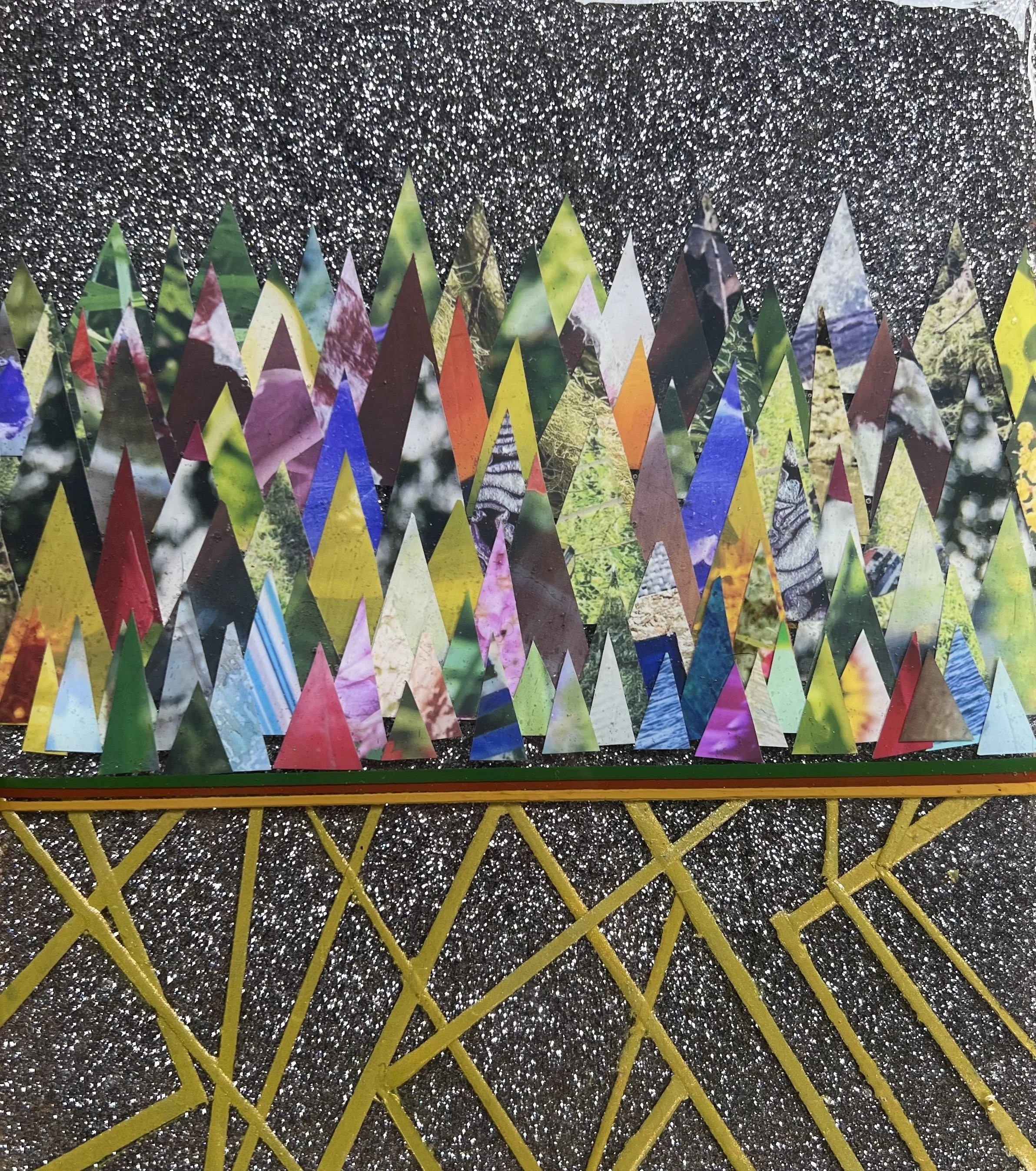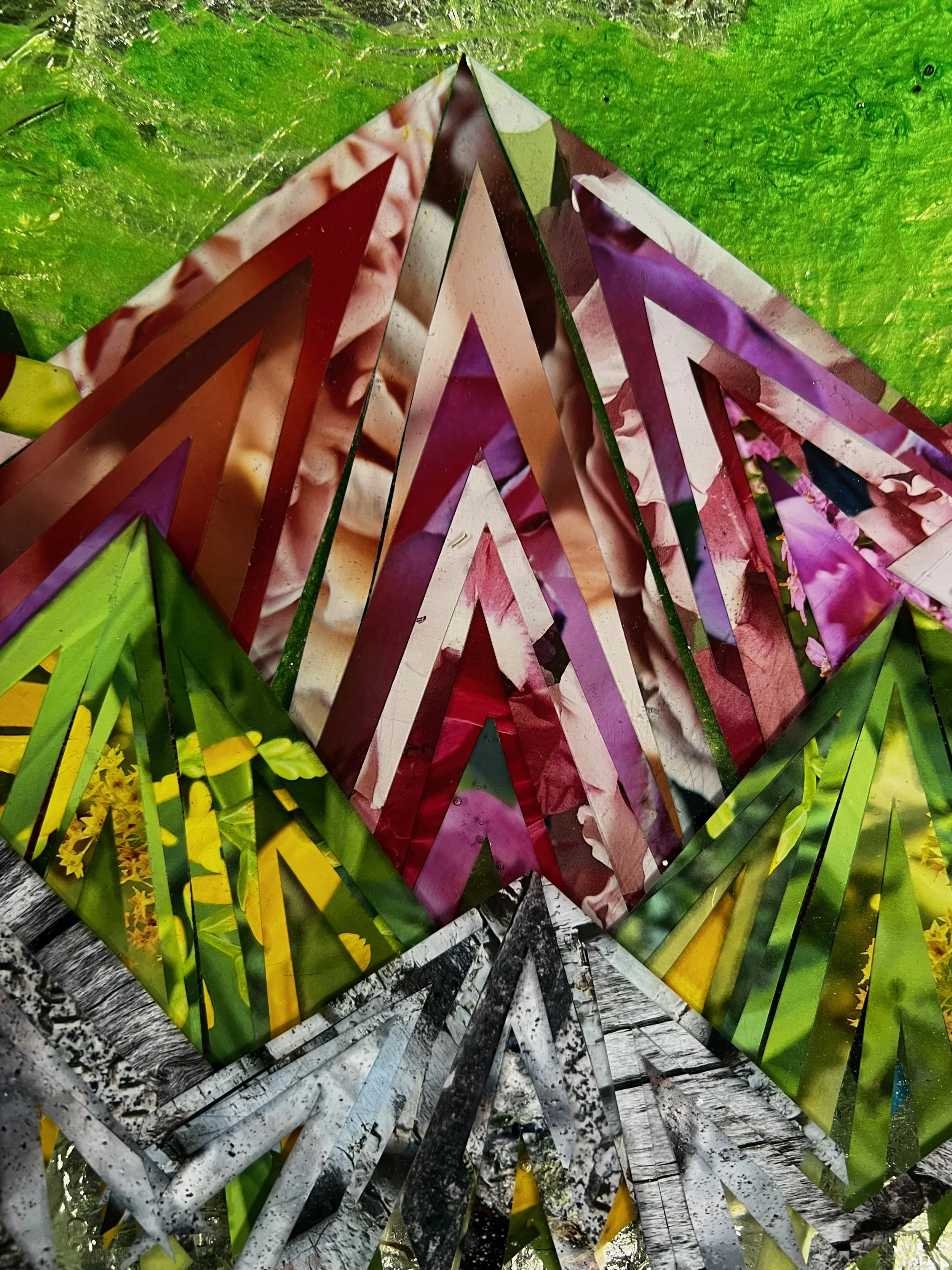 I am an artist with technical leanings and I find these collages meld between semi organic and some digital in their appearance, all hand cut piece by piece, a permanent collage mandala. I intend to create landscapes to phase out on hopefully relaxing the eyes after a hard days brow furrowing. Inspired heavily by the presence of my daughter in my life and dissecting and amending visual communication to relate on a simpler plane of understanding. This work is heavily reliant on a need to have a repetitive task to meditate on cutting each piece individually, none of the pieces mean much on their own but together they make something more then what they were (taking up space on my shelf.) To create something beautiful from the left behind. Trying to create an artistic process in line with holistic earth living authenticity I am my own self supplying art maker as long as I remain also a photographer and i trust that photography flows through my life as sure as breath.