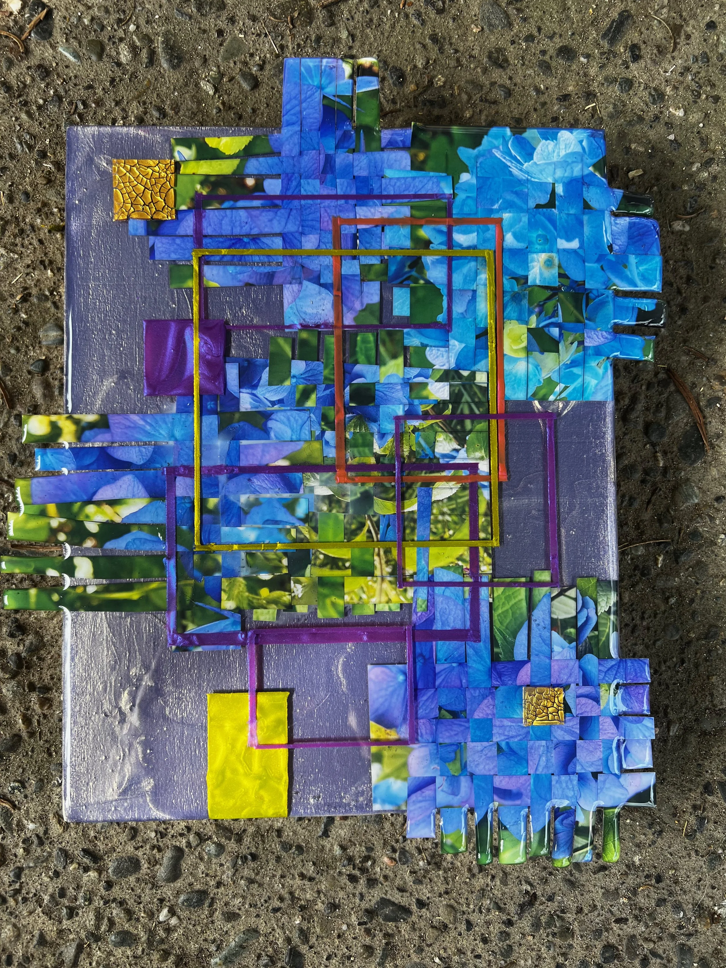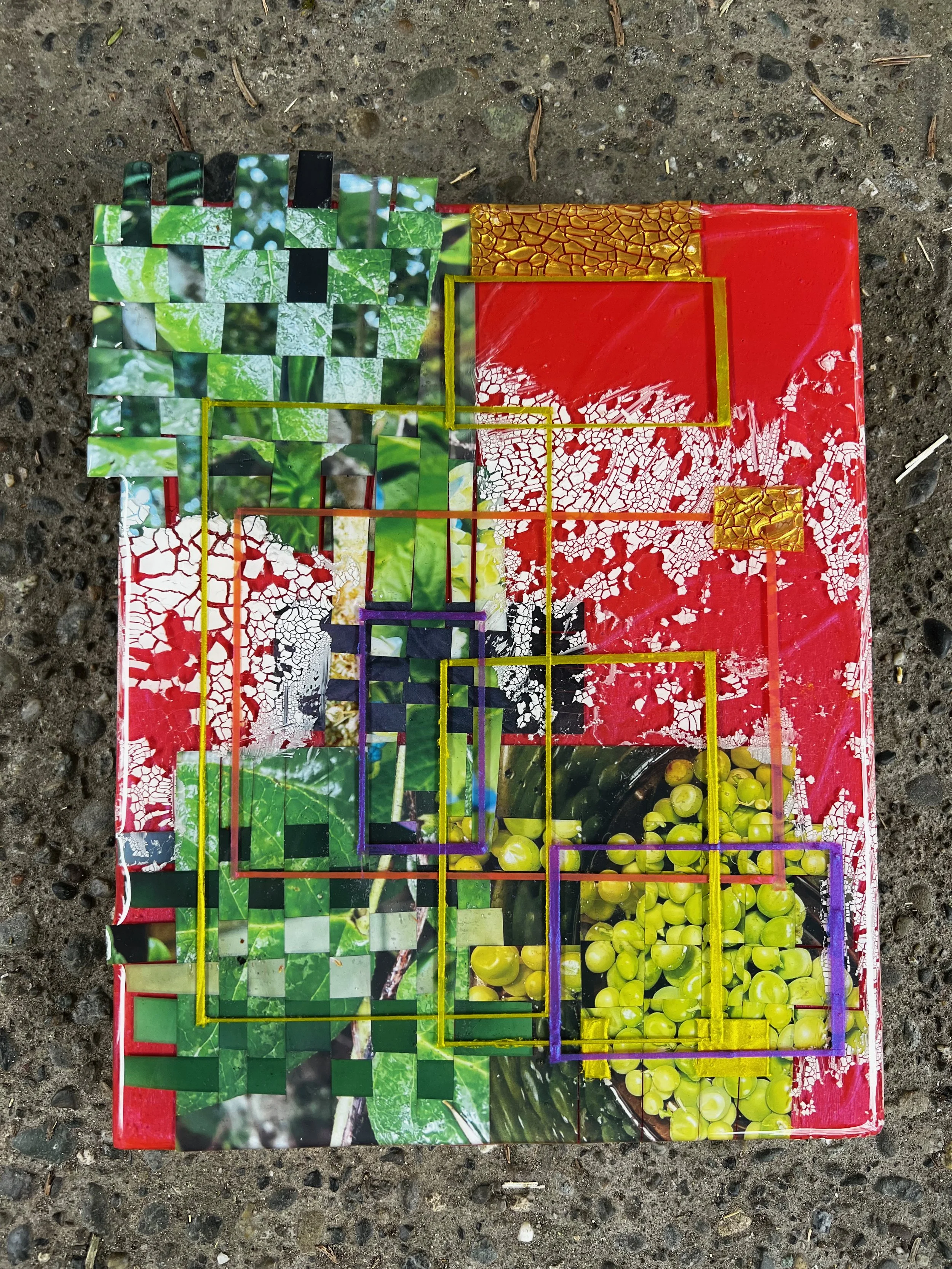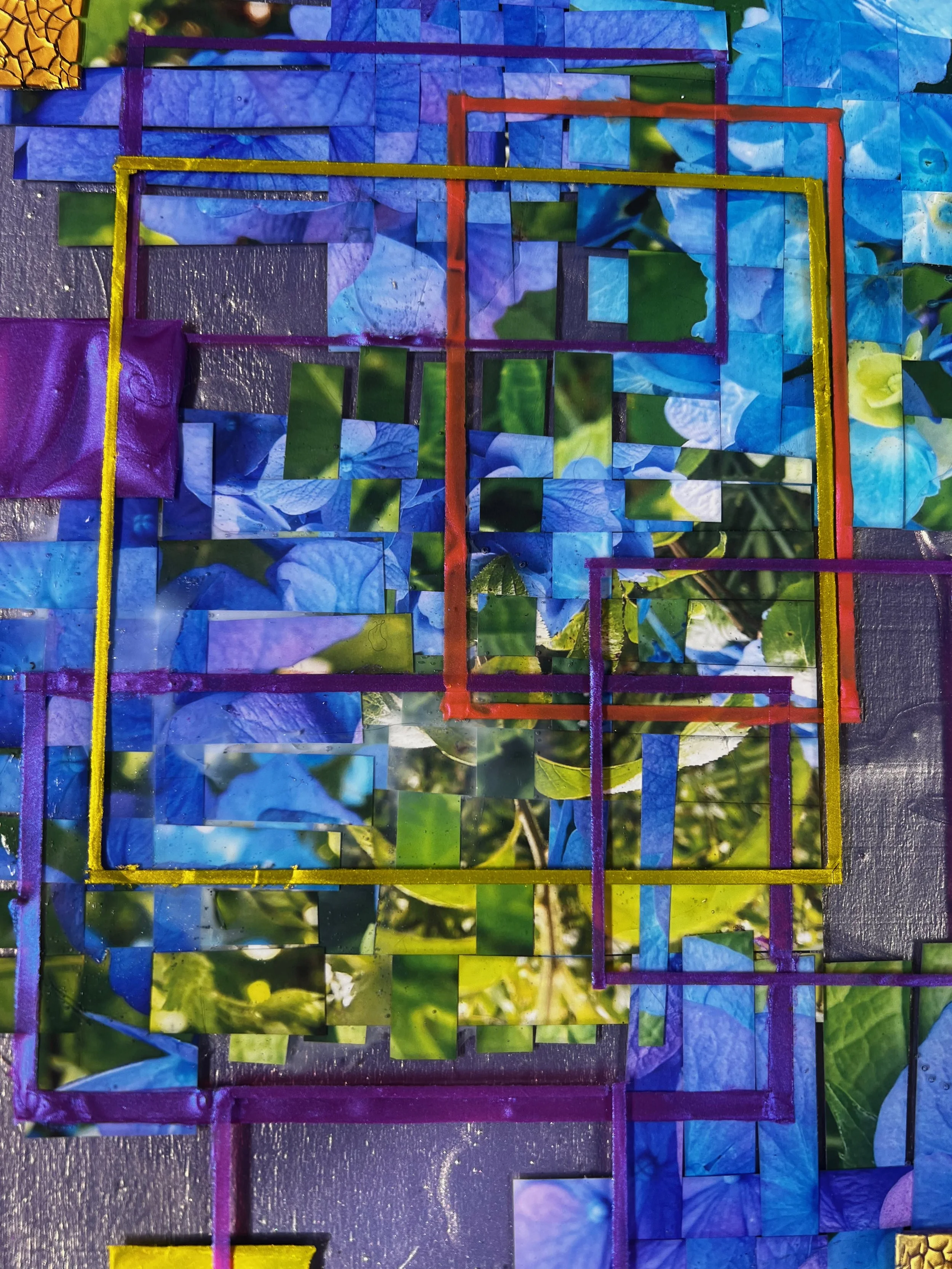 I am an artist with technical leanings and I find these collages meld between semi organic and some digital in their appearance, all hand cut piece by piece, a permanent collage mandala. I intend to create landscapes to phase out on hopefully relaxing the eyes after a hard days brow furrowing. Inspired heavily by the presence of my daughter in my life and dissecting and amending visual communication to relate on a simpler plane of understanding. This work is heavily reliant on a need to have a repetitive task to meditate on cutting each piece individually, none of the pieces mean much on their own but together they make something more then what they were (taking up space on my shelf.) To create something beautiful from the left behind. Trying to create an artistic process in line with holistic earth living authenticity I am my own self supplying art maker as long as I remain also a photographer and i trust that photography flows through my life as sure as breath.